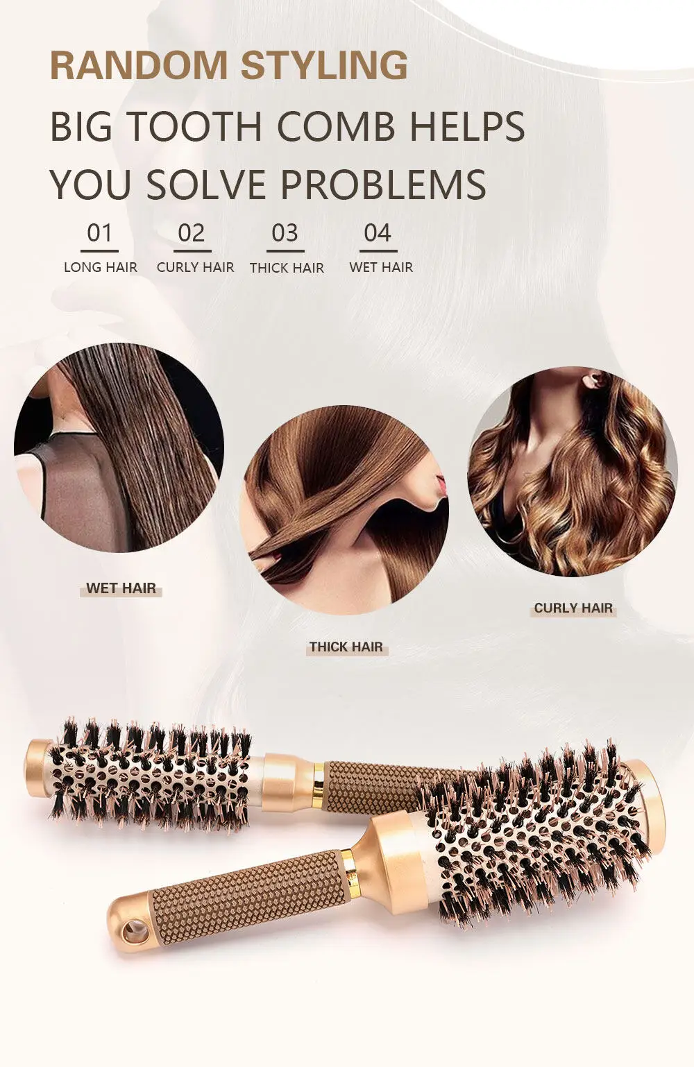 The flexible nylon comb teeth can massage your scalp moderately and tightly curl your hair and effectively comb the knotted hair. At the same time, it can also comb through hair and enhance the resilience of your hair.